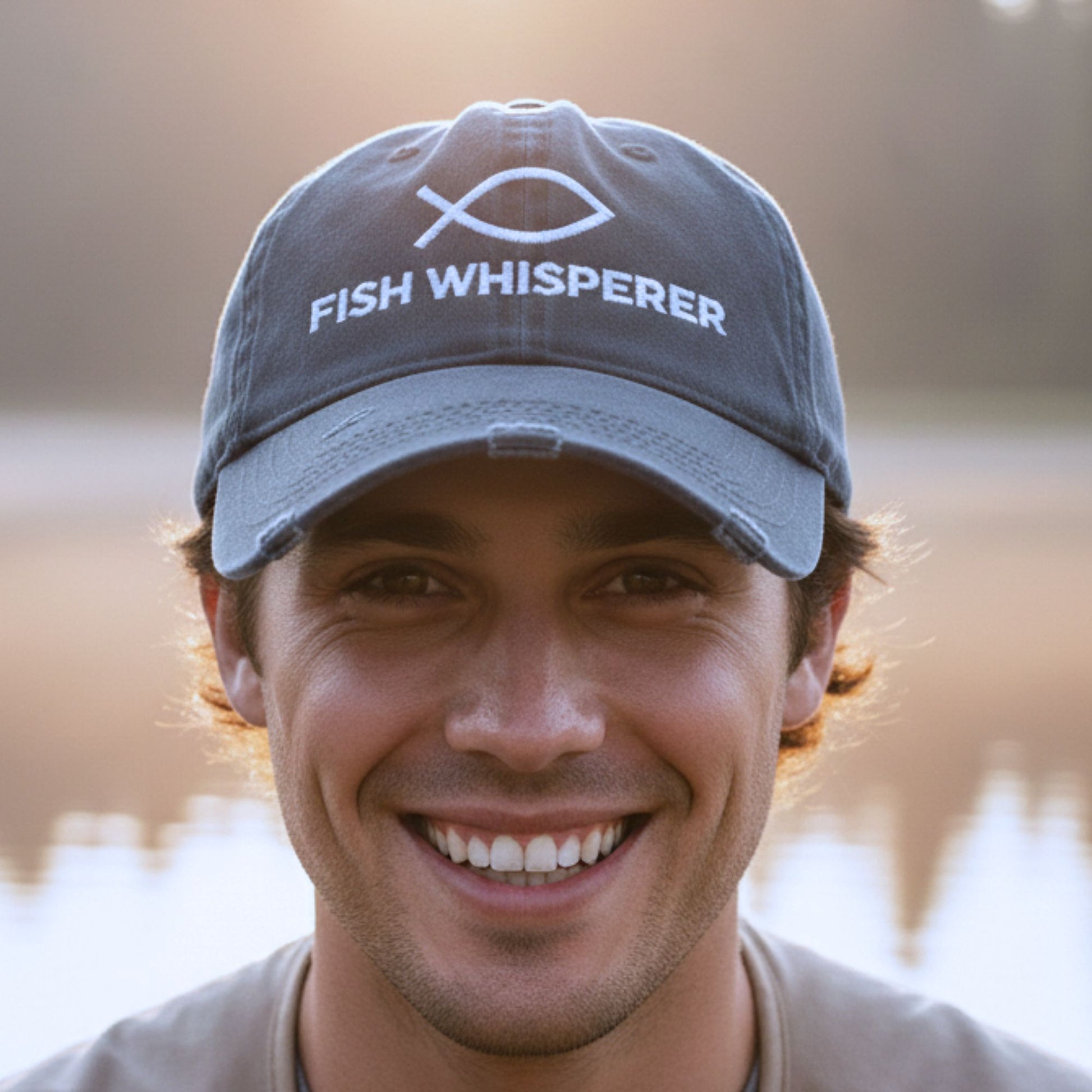 Distressed Dad Hat — Fish Whisperer Embroidered Fishing Cap