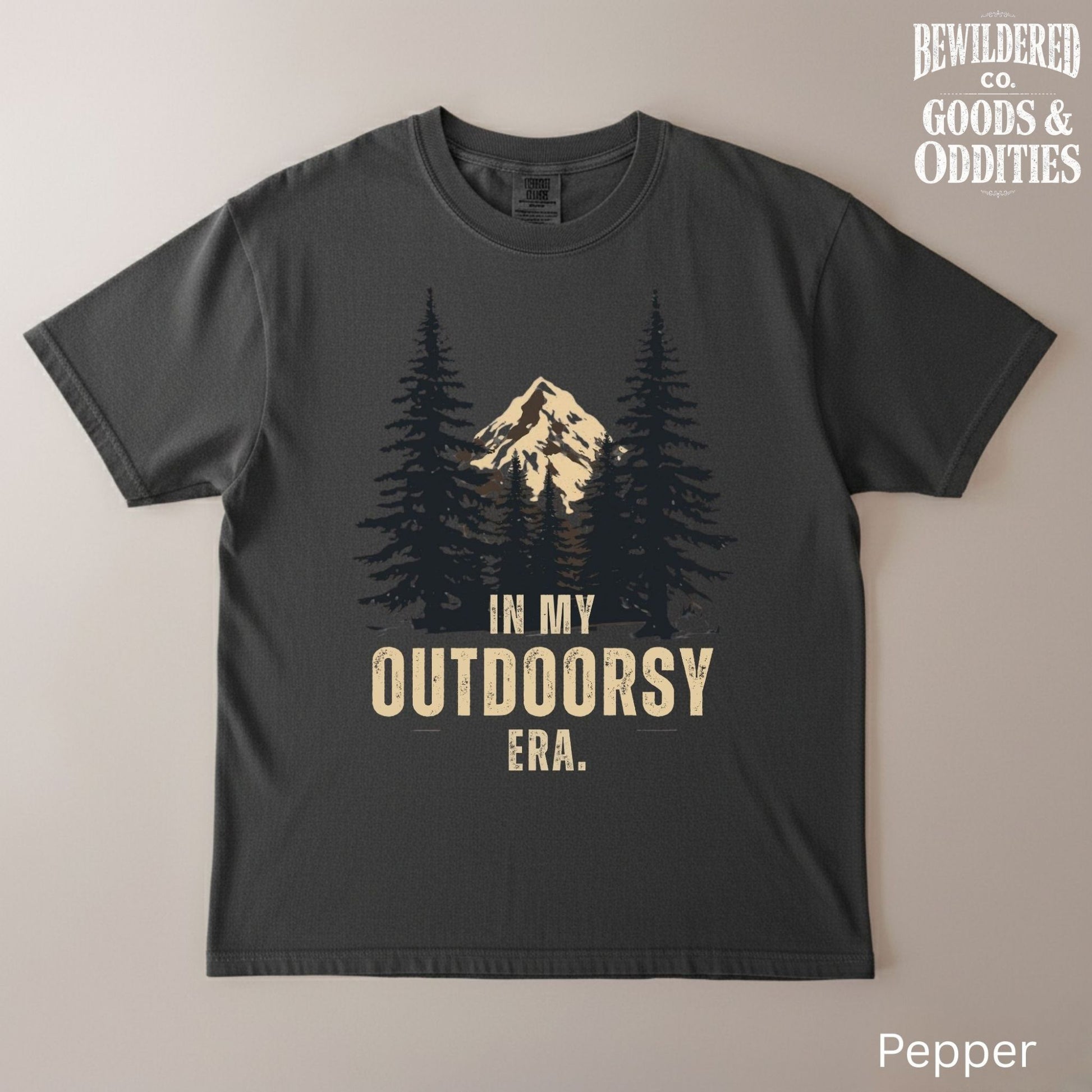 Soft, rugged, and quietly adventurous — this garment-dyed tee brings the woods to your everyday. A heavy-weight, relaxed-fit cotton shirt with a worn-in color and a printed forest-and-mountain graphic that reads “In My Outdoorsy Era.” It drapes comfortably after break-in, holds up through hikes and weekend chores thanks to double-needle stitching, and keeps a lived-in feel because it’s garment-dyed after construction. Wear it to coffee runs before a trailhead, layered under a flannel at dusk, or around a campfire while swapping route stories. Subtle, outdoorsy design and dependable construction make it feel like a trusted favorite from the first wear.